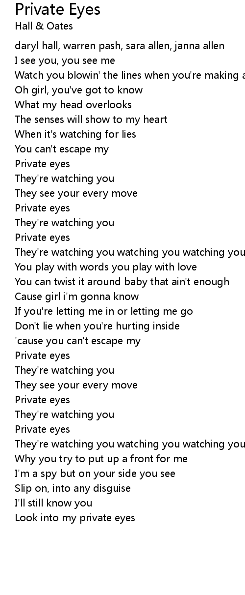 Lyrics For Private Eyes By Hall Oates Songfacts